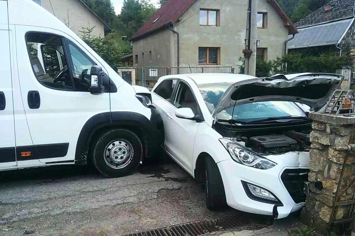 V Dohňanoch sa stala vážna nehoda, auto sa zrazilo s dodávkou a skončilo v múre, zranili sa všetci účastníci havárie