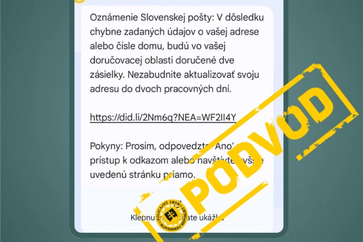 Polícia Slovenskej republiky upozorňuje verejnosť na aktuálny podvod, ktorý sa šíri formou SMS správ. Odosielatelia sa v nich vydávajú za Slovenskú poštu, pričom správa obsahuje odkaz na falošnú webovú stránku.