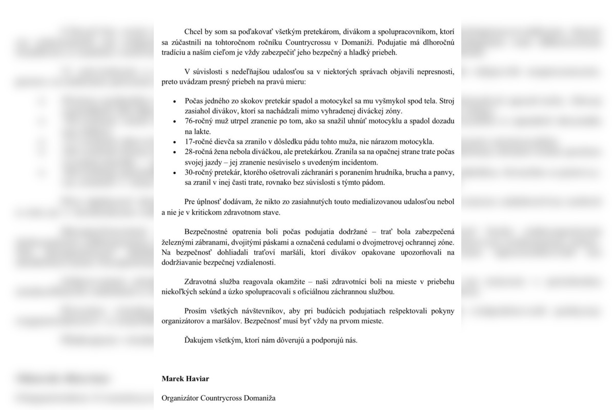 VIDEO: Organizátor Countrycross v Domaniži, kde sa zranili diváci, opäť prehovoril. Všetko bolo inak