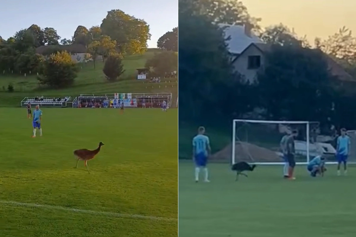 Kým inokedy zápasy narušia najmä fanúšikovia alebo psy, tentoraz čakal hráčov omnoho nezvyčajnejší súper. Pštros pobehoval po trávniku rýchlo a neúnavne viac než desať minút. Futbalisti sa ho snažili zahnať, no vták bol prekvapivo obratný, píše Šport24.