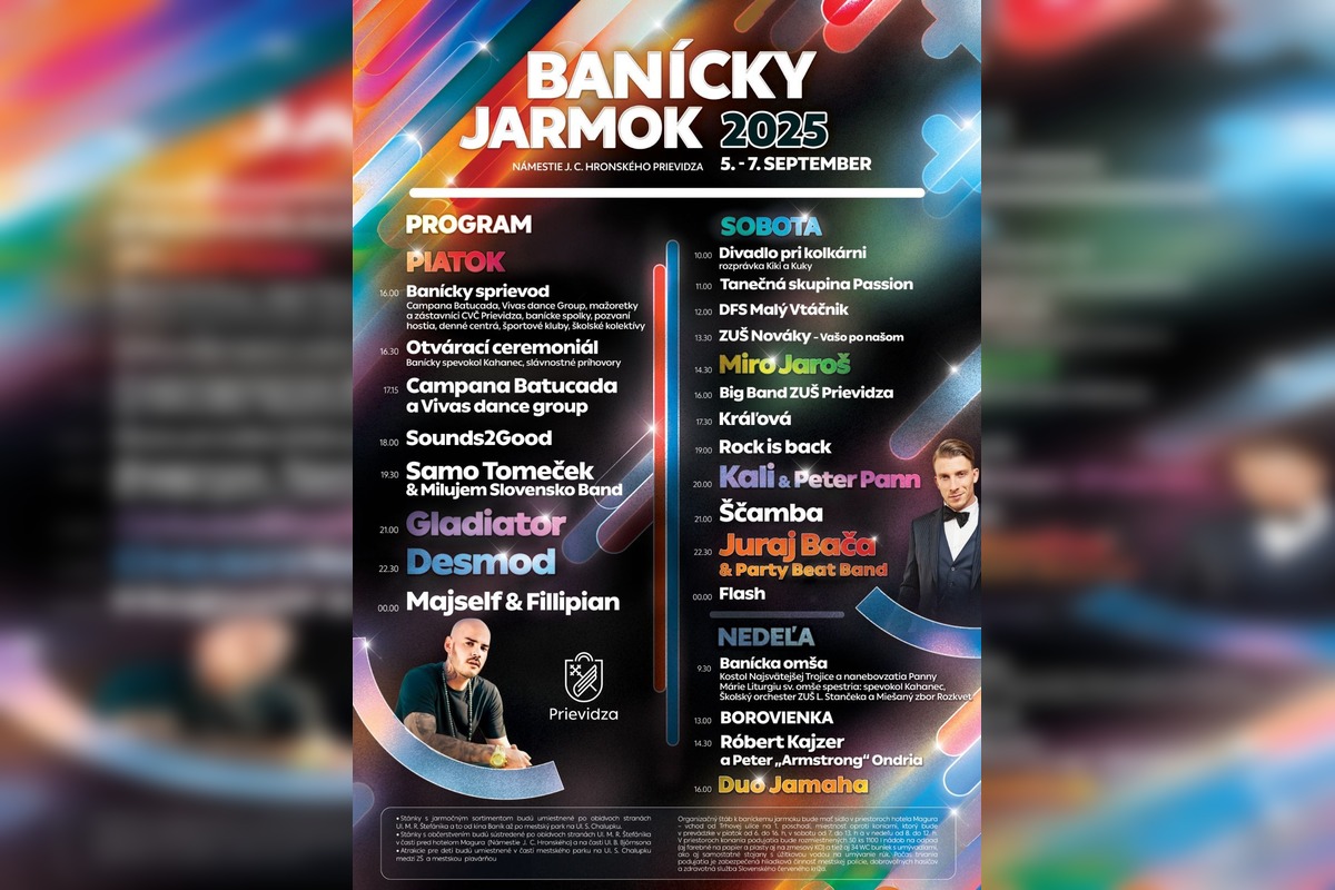 V Prievidzi odštartuje Banícky jarmok, čaká na vás Desmod, Majself aj Kali & Peter Pann, autobusy budú zadarmo