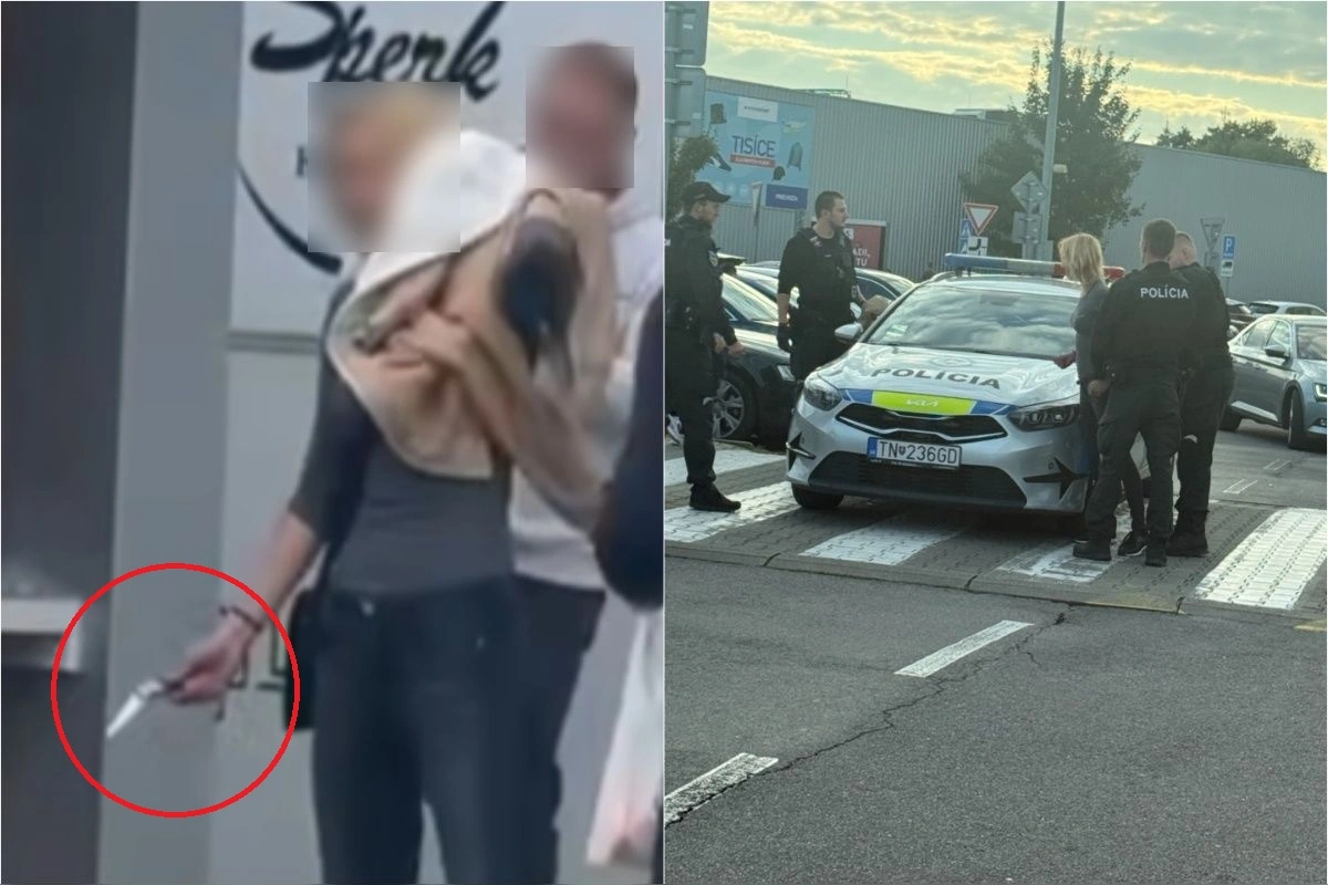 VIDEO: Opitá žena sa pred prievidzkým OC Korzo s nožom vyhrážala ľudom, spacifikovať ju musela polícia