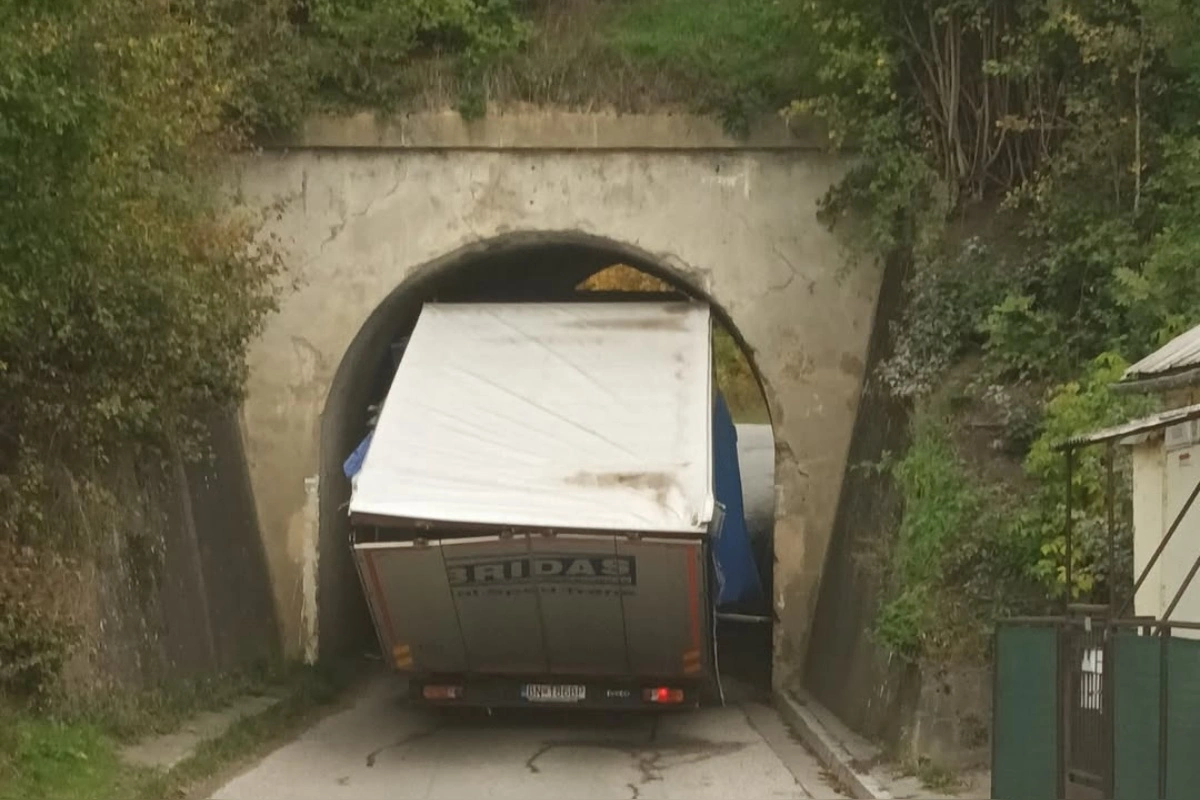 FOTO: Tak toto sa len tak nevidí, kamión sa zasekol pod mostom v Starej Turej