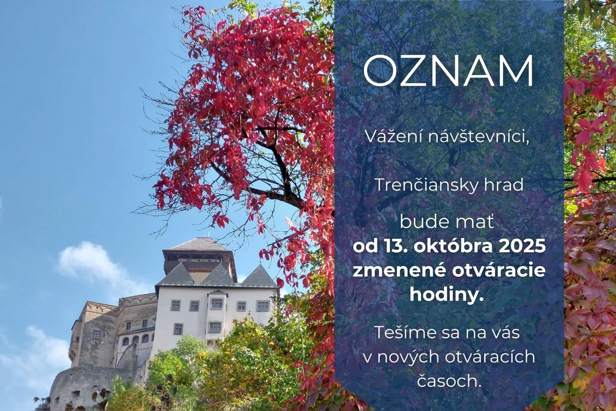 Od 13. októbra 2025 vstupuje Trenčiansky hrad do zimného režimu prevádzky. Počas tohto obdobia sa skracuje otváracia doba hradu do 17:00 hod., pričom posledný vstup do areálu je možný o 16:30 hod. Návštevníci by preto mali počítať s kratším časom na prehliadku aj s drobnými zmenami v organizácii vstupov.