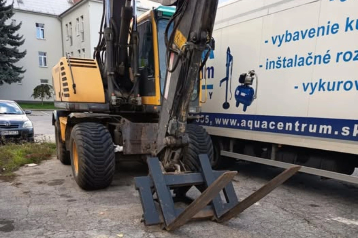 V Novom Meste nad Váhom parkuje bager s vidlami otočenými nahor, miestni chcú vedieť, či je niečo také v poriadku