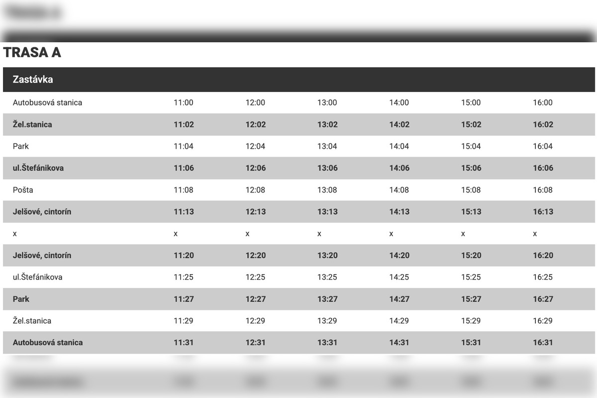 Linka A vyrazí z autobusovej stanice a zastaví napríklad pri železničnej stanici, na Štefánikovej ulici či pri pošte, kým linka B bude spájať mestské časti Hliny, Lánsku, TESCO, nemocnicu či IV. ZŠ s cintorínom Jelšové.