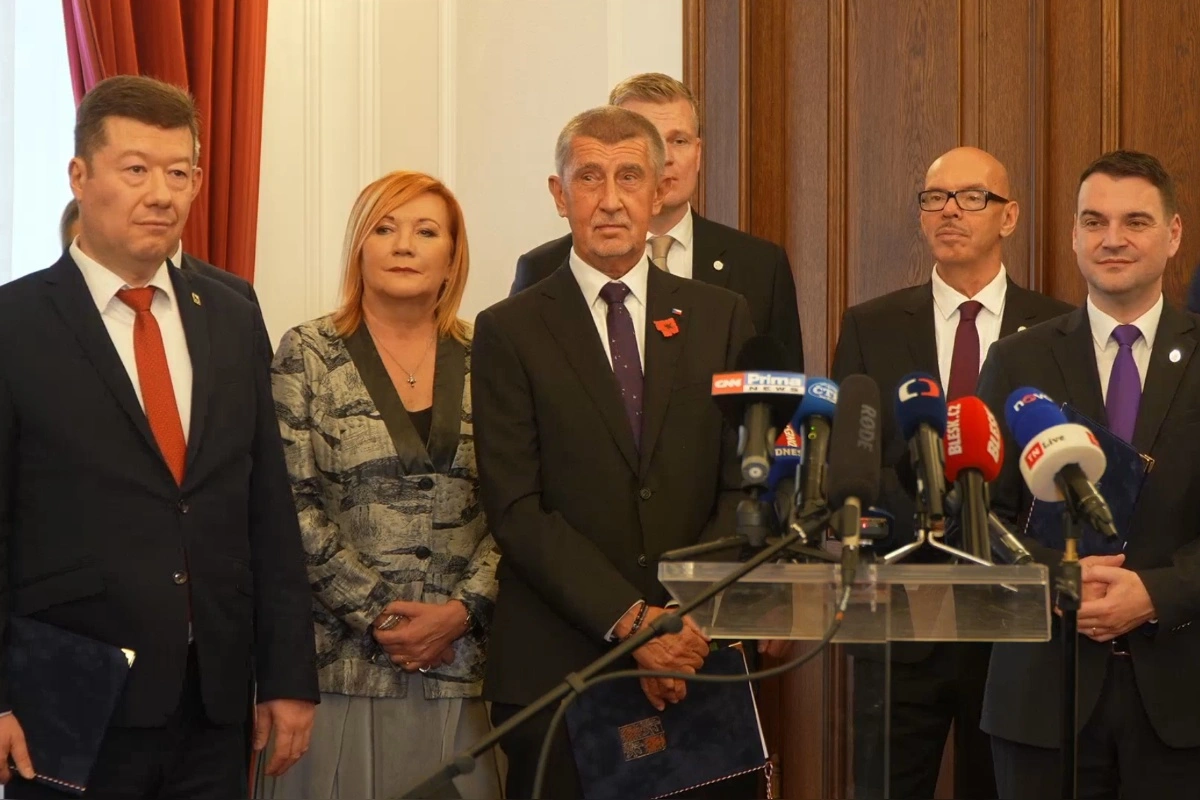 Len hodinu pred začiatkom ustanovujúcej schôdze novej Poslaneckej snemovne v Prahe podpísali predstavitelia hnutí ANO, SPD a Motoristi koaličnú zmluvu. Pravdepodobný budúci premiér Andrej Babiš, ktorý dostal poverenie zostaviť vládu od prezidenta Petra Pavla, uviedol, že jeho kabinet by mal vzniknúť „najneskôr do polovice decembra“.