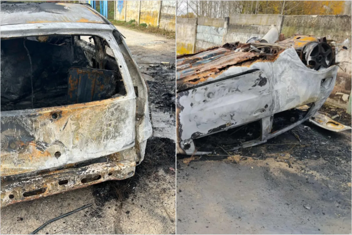FOTO: Bánovčania hľadajú vinníka, ktorý im prevrátil a zapálil auto, stálo neďaleko ihriska v Rybanoch