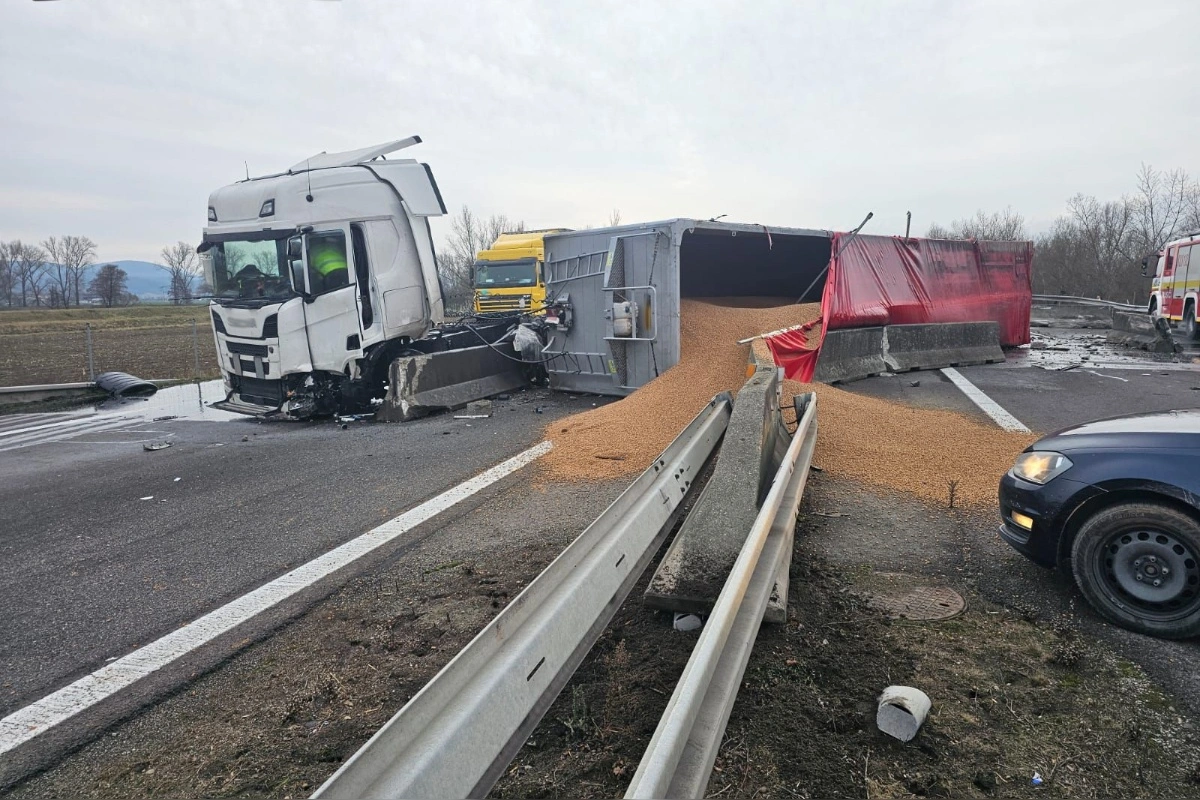 Prevrátený kamión uzavrel D1 pri Dubnici nad Váhom, vznikli obrovské škody, vodiči vyviazli zázrakom takmer nezranení