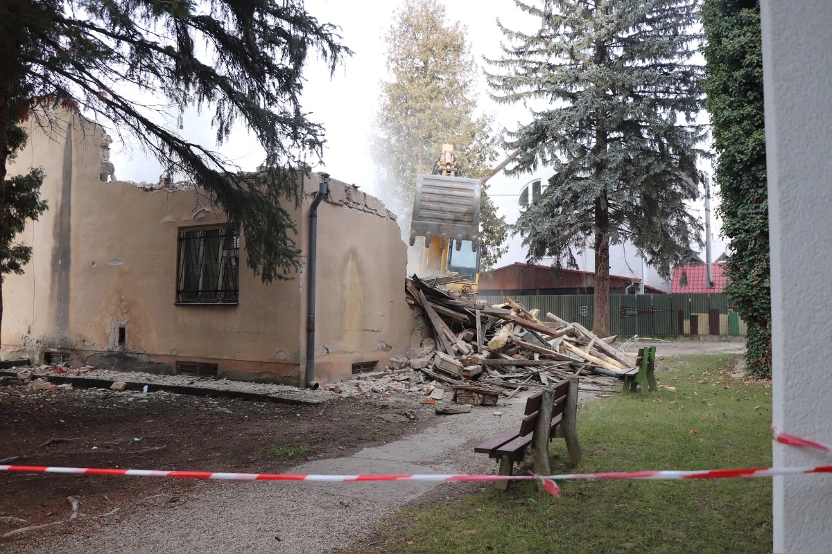 V areáli dubnického gymnázia zrovnali nefunkčný domček so zemou. Na jeho mieste vznikne funkčný a zelený priestor