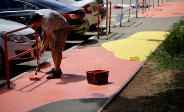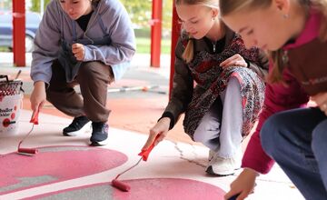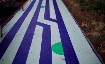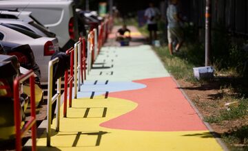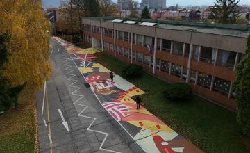 Pri trenčianskej škole pomaľovali chodník pestrými farbami, deti majú mať cestu do školy bezpečnú a hravú