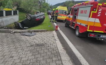V Kľačne skončilo auto na streche. Zasahovali tam všetky záchranné zložky
