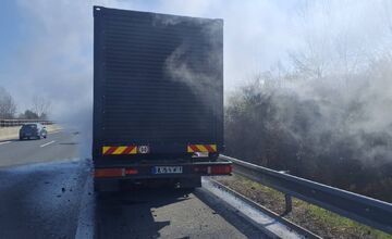 Hasiči zasahovali pri požiari kamióna na D1 v okrese Považská Bystrica, vodič stihol z kabíny uniknúť