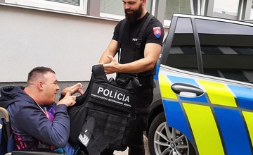 Martina z Dubnice nad Váhom potešila návšteva policajtov, s obdivom si vyskúšal ich výzbroj aj výstroj