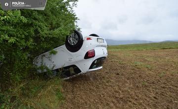 Auto pri Novom Meste nad Váhom skončilo na streche a bez predného kolesa, vodič utrpel zranenia