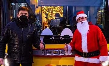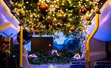Vianočný autobus aký nikde inde neuvidíte. Za jeho volantom sedí Mikuláš a tá výzdoba