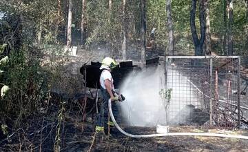 V Novej Dubnici horel borovicový les. Hasičom sa podarilo zachrániť chatky, zhoreli však menšie objekty