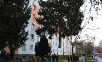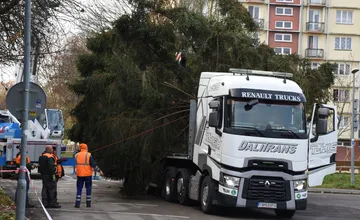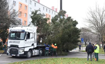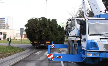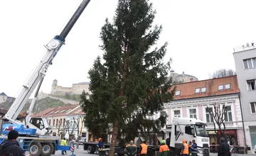 FOTO+VIDEO: Mierové námestie v Trenčíne už zdobí 17-metrový smrek. Chudák strom, ešte mohol žiť, tvrdia miestni