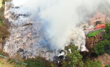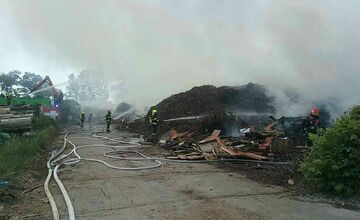 VIDEO+ V obci Potvorice pri Novom Meste nad Váhom horela drevoštiepka, oheň ničil tony dreva