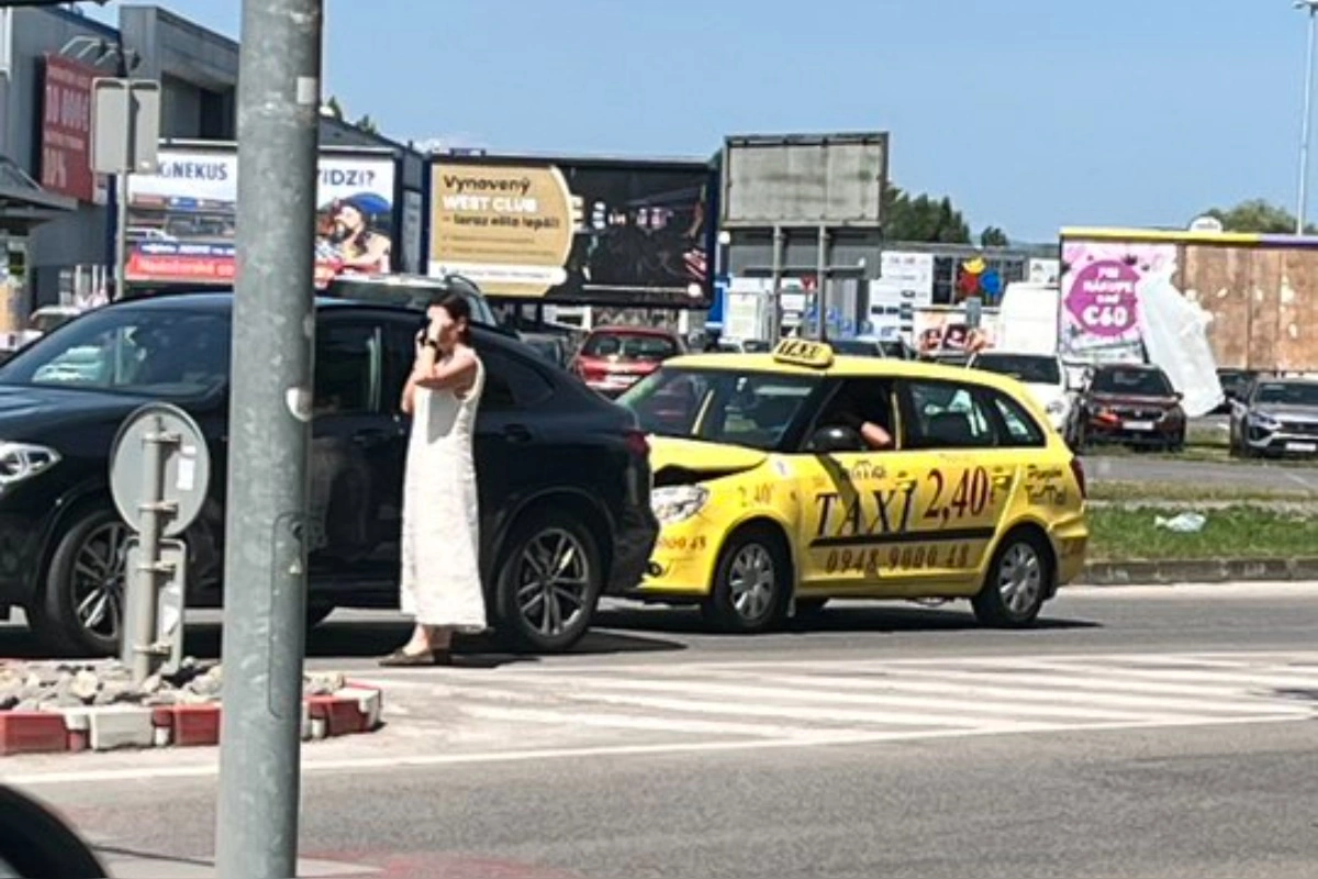 V Prievidzi na Nedožerskej ceste sa zrazil taxík s osobným autom, blokujú jeden pruh (FOTO)