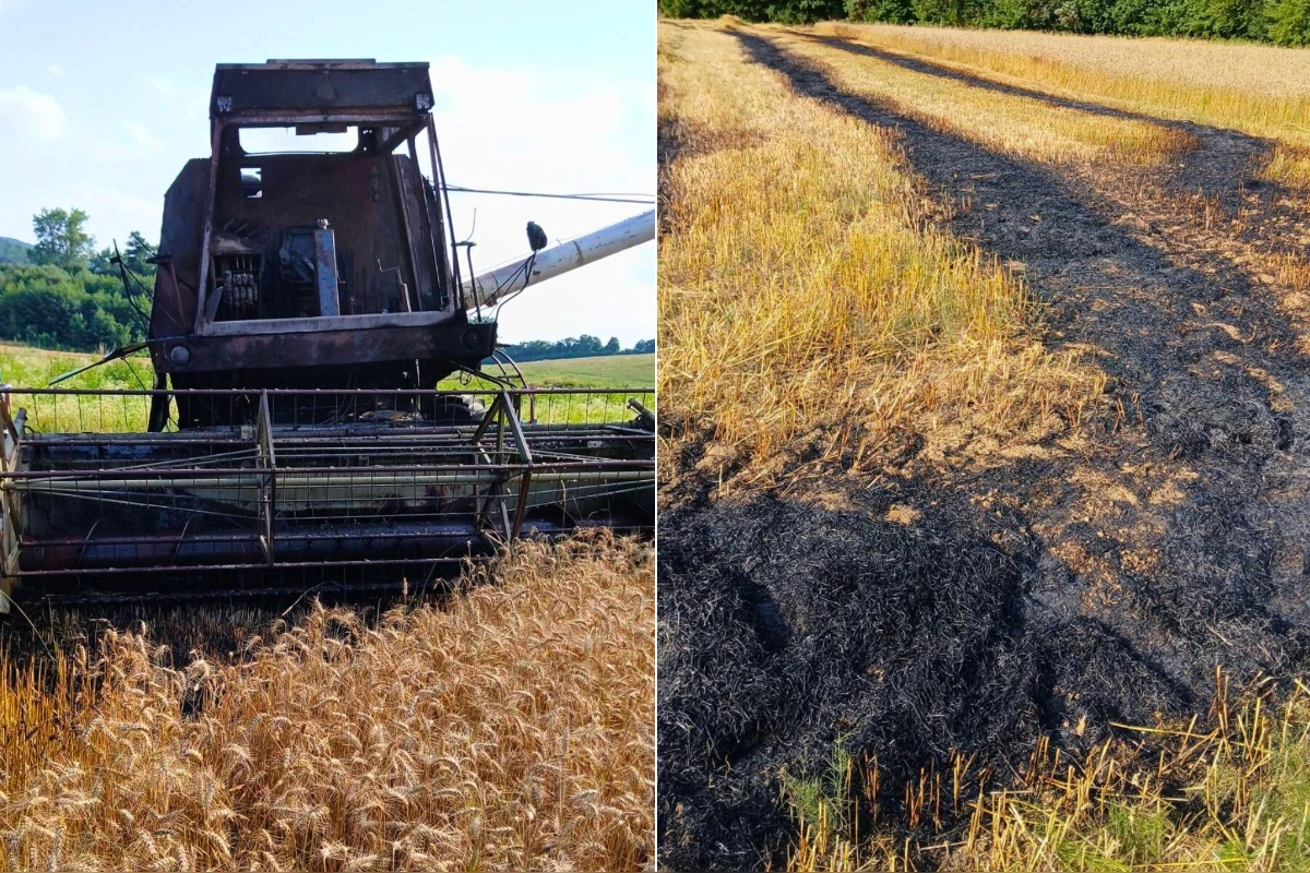 V Hrachovišti horel kombajn, požiar sa rozšíril aj na priľahlé pole, zasahovalo deväť profesionálnych hasičov