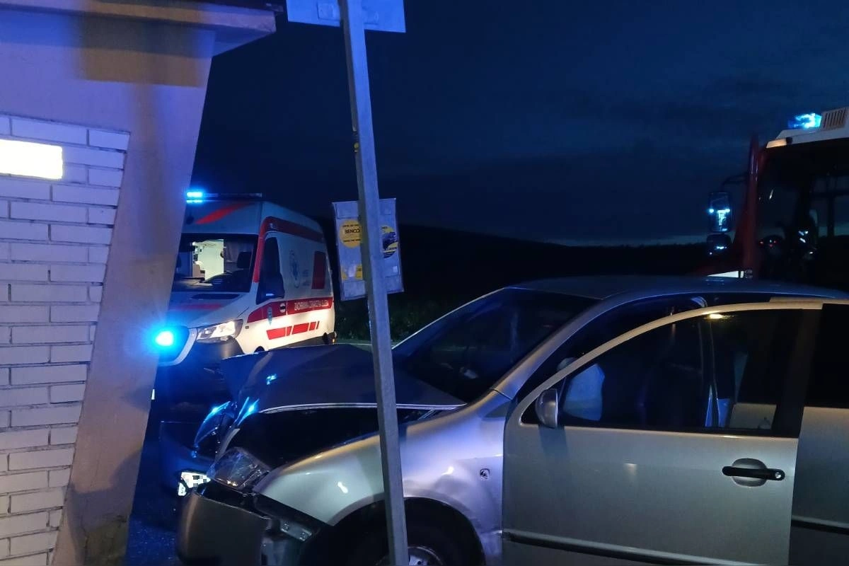 V okrese Trenčín narazil osobný automobil do autobusovej zastávky, dve osoby ošetrili záchranári