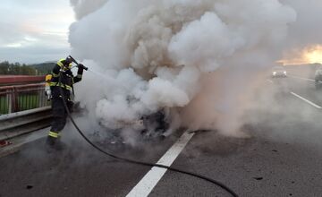 Auto na diaľnici D1 pri Považskej Bystrici zachvátili plamene, zázrakom sa nikomu nič nestalo