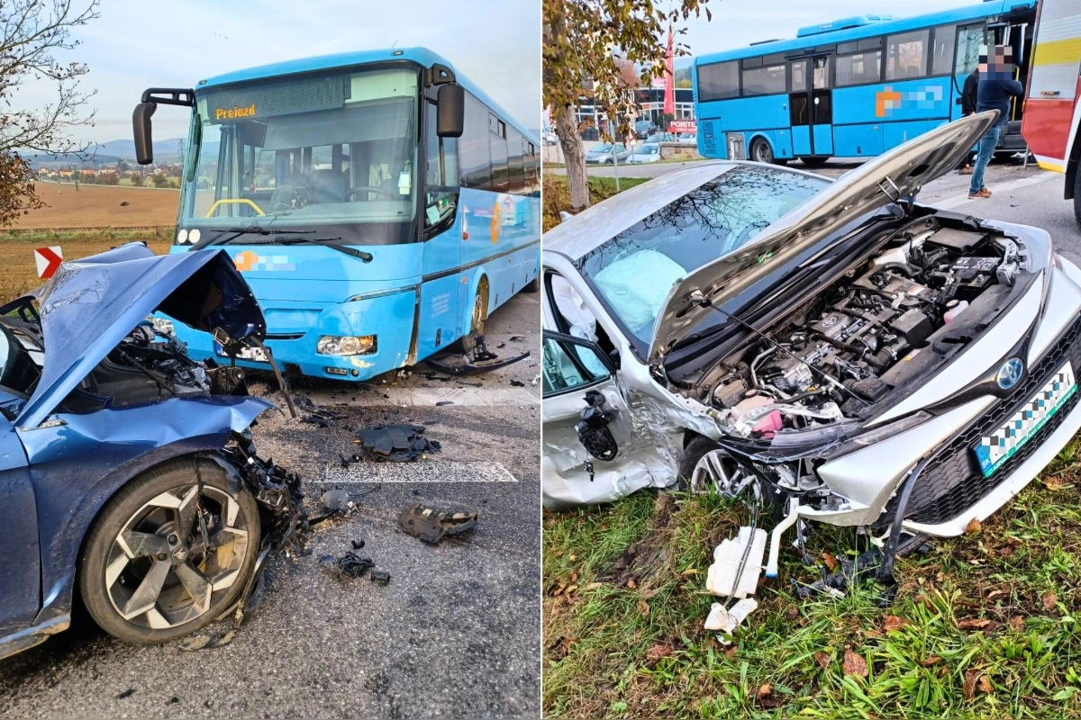 V Bánovciach nad Bebravou sa zrazili dve osobné autá s autobusom, jedno z vozidiel skončilo v priekope