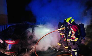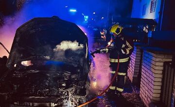 Auto pred rodinným domom v Nitrianskom Pravne zhorelo do tla, požiar vypukol ešte pred svitaním